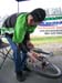 up his rear tire and he almost got kicked off his bike. Thankfully